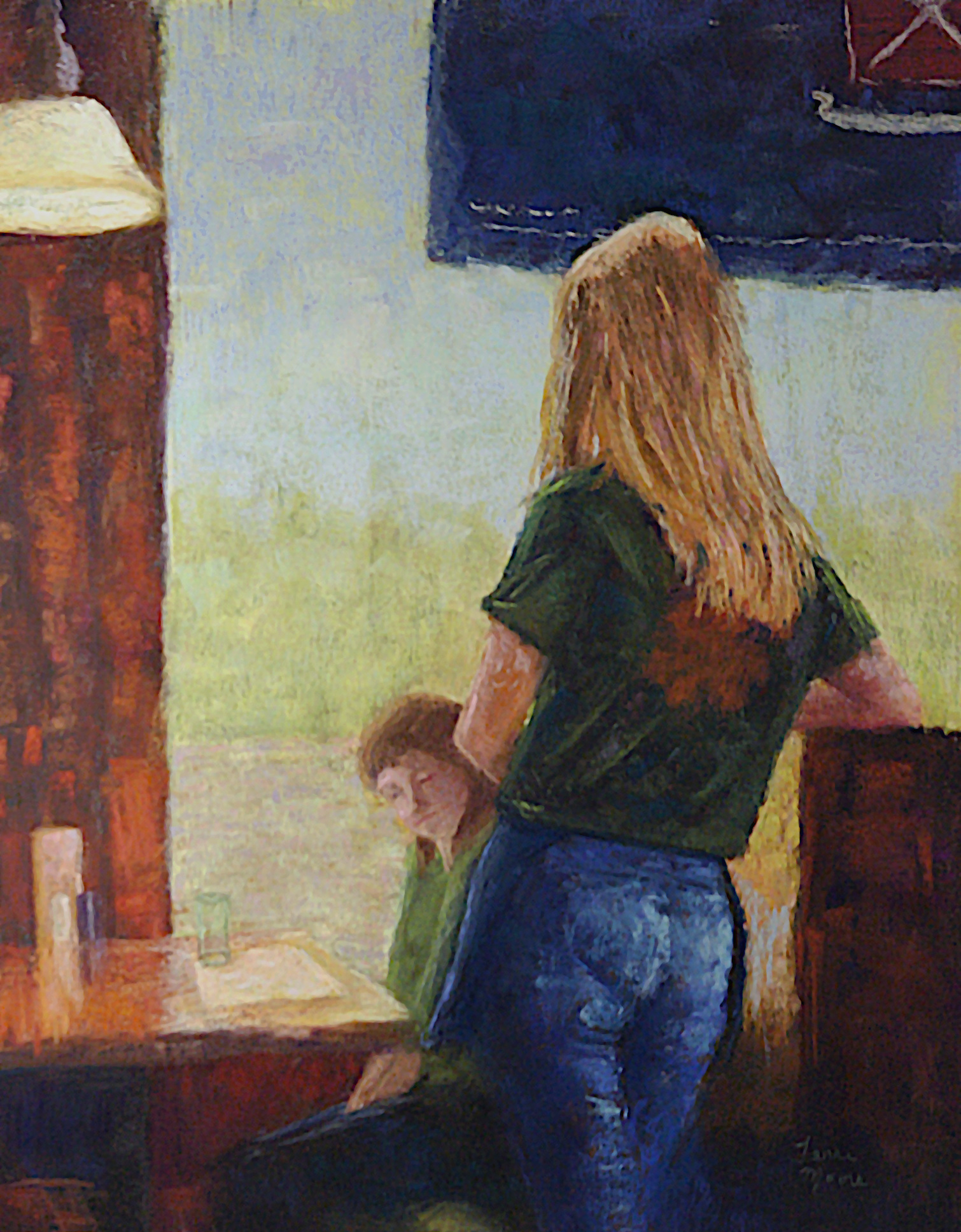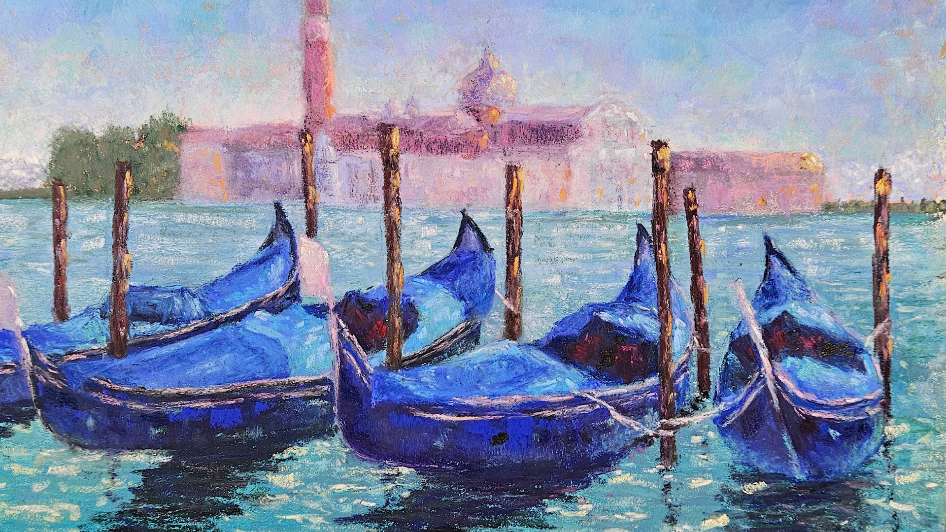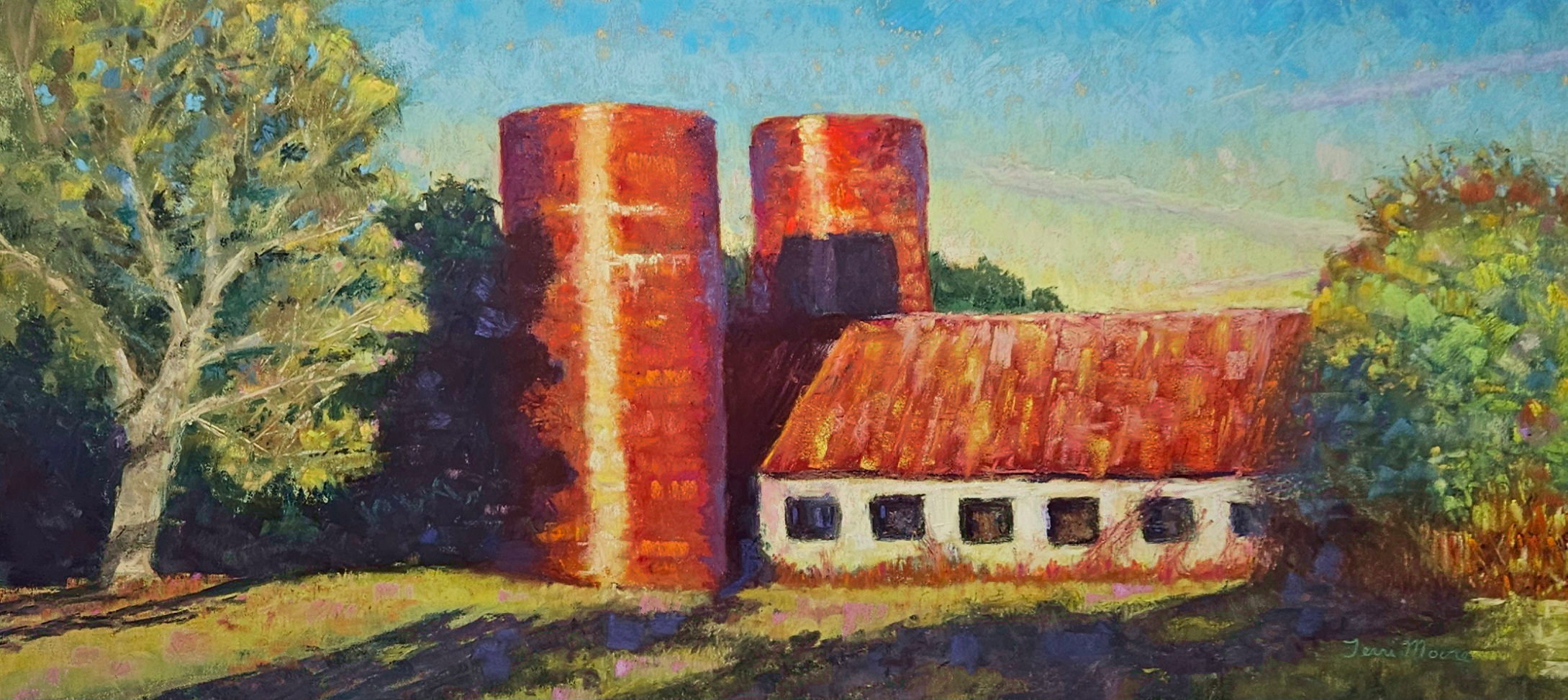 Terri works in pastels, a medium used by artists since the Renaissance, that comes in the form of a stick consisting of powdered pigment and a binder resulting in a medium that has the highest pigment concentration. Although pigments used in pastels are the same as those used in other visual arts, such as oil paints, the color effect of pastels is closer to natural pigments than any other process. As a result of this pure pigment, pastel paintings glow with intense luminous color and rich velvety texture, reflecting light without darkening refraction, and allowing for very saturated colors. A pastel painting is made by moving the sticks over an abrasive surface, so Terri works on sanded papers such as UArt, Coulorfix, and Pastelmat, among others.